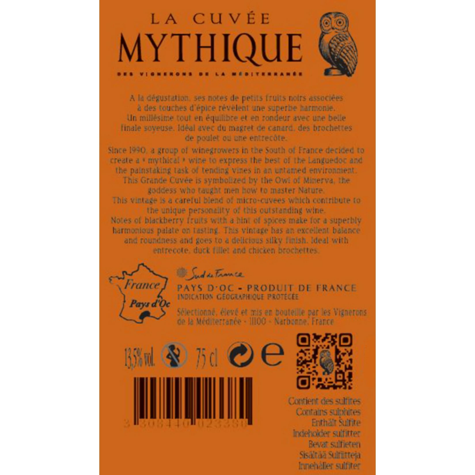 Die Cuvée aus traditionellen Rebsorten Südfrankreichs überzeugt mit einem noblen Duft von dunklen Beerenfrüchten, zerstoßenem Pfeffer und Nuancen von mediterranen Kräutern. Im Geschmack dicht und komplex mit fruchtiger Frische und feinrauchig unterlegten Aromen nach Cassis, Schlehen und dunkler Schokolade. Charaktervolle Struktur mit angenehmer Säure und der typisch wild-herzhaften, südfranzösischen Art.